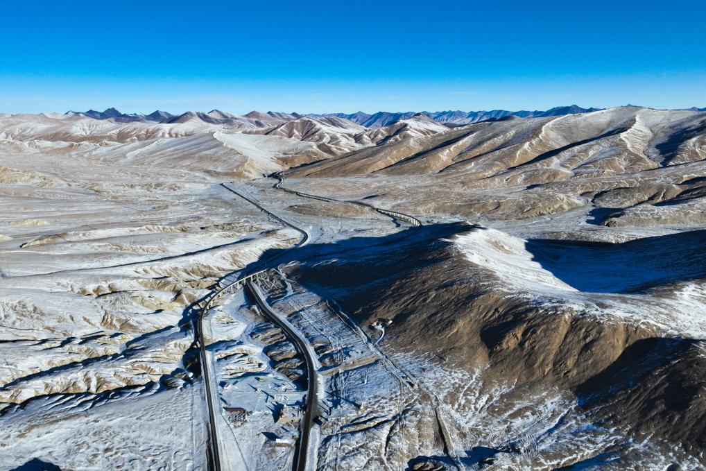 這是12月1日在昆侖(lun) 山口拍攝的青藏公路(右)與(yu) 青藏鐵路。新華社記者 張龍 攝