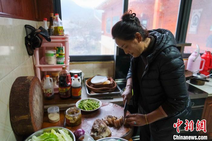 圖為(wei) 12月13日,西藏波密易貢伴山雲(yun) 水小院家庭旅館啊牛在為(wei) 客人準備晚飯。記者 江飛波 攝