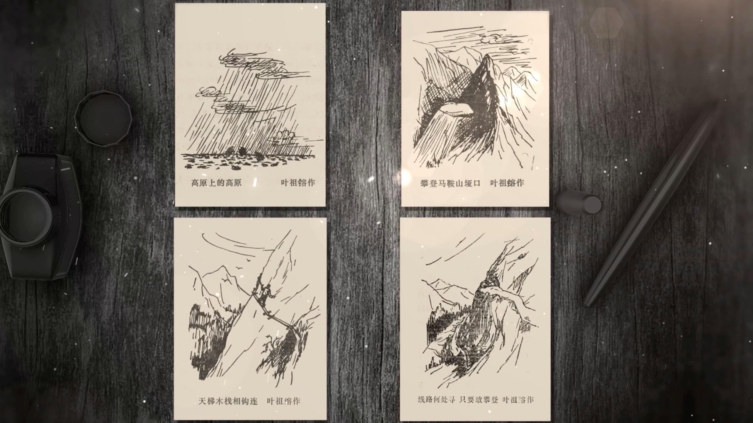 畫稿的作者是葉祖鎔。他是踏勘隊中負責地形圖測繪的成員。在隊長餘(yu) 炯帶領下,深入無人區進行勘測,與(yu) 築路大軍(jun) 幾近失聯數月,但最終冒著生命危險帶回了寶貴的勘測報告。這是葉祖鎔當年畫的素描畫,高原上的高原、雪山頂的埡口、絕壁間的天梯、險峰中的窄路、踏勘隊沿途經曆的各種地形,保留在這四張手繪中,它們(men) 見證著在生死之間,踏勘隊員的樂(le) 觀豁達、無所畏懼。
