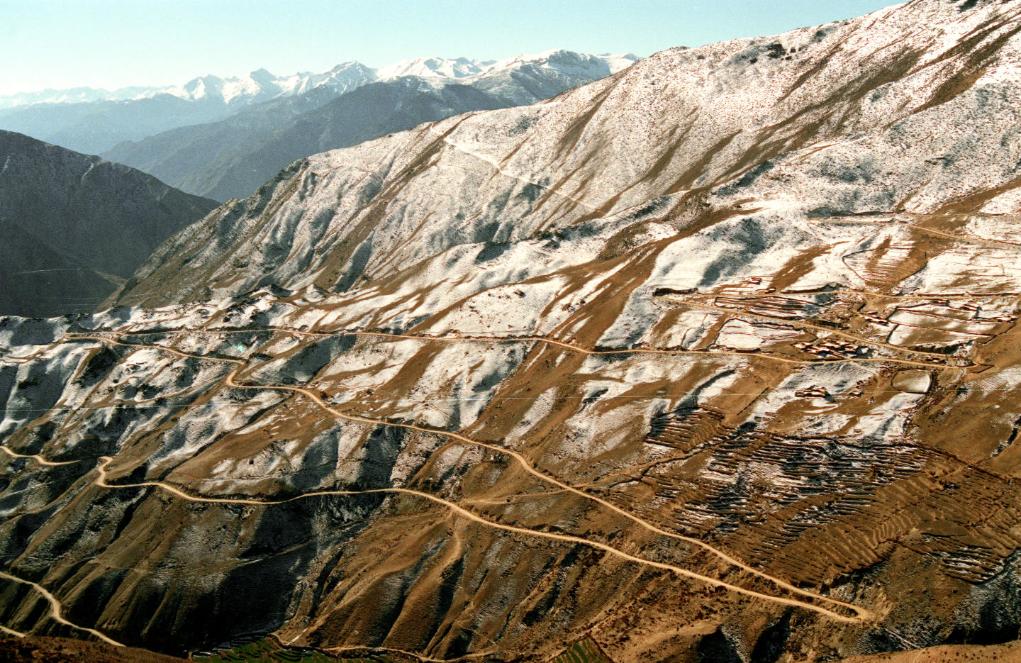 二十世紀90年代蜿蜒曲折的川藏公路。