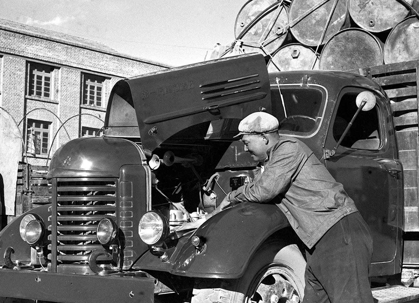 1964年,曾經是川藏公路築路工人的汽車駕駛員呷瑪卻桑在出車前對汽車機件進行檢查。
