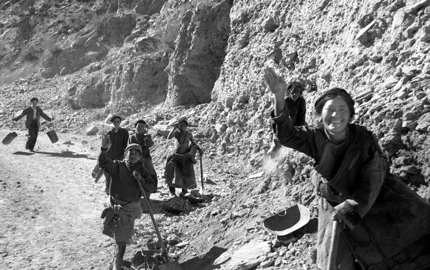 二十世紀60年代,在川藏公路上,辛勤的藏族養(yang) 路工人熱情地向過路的旅客們(men) 揮手。