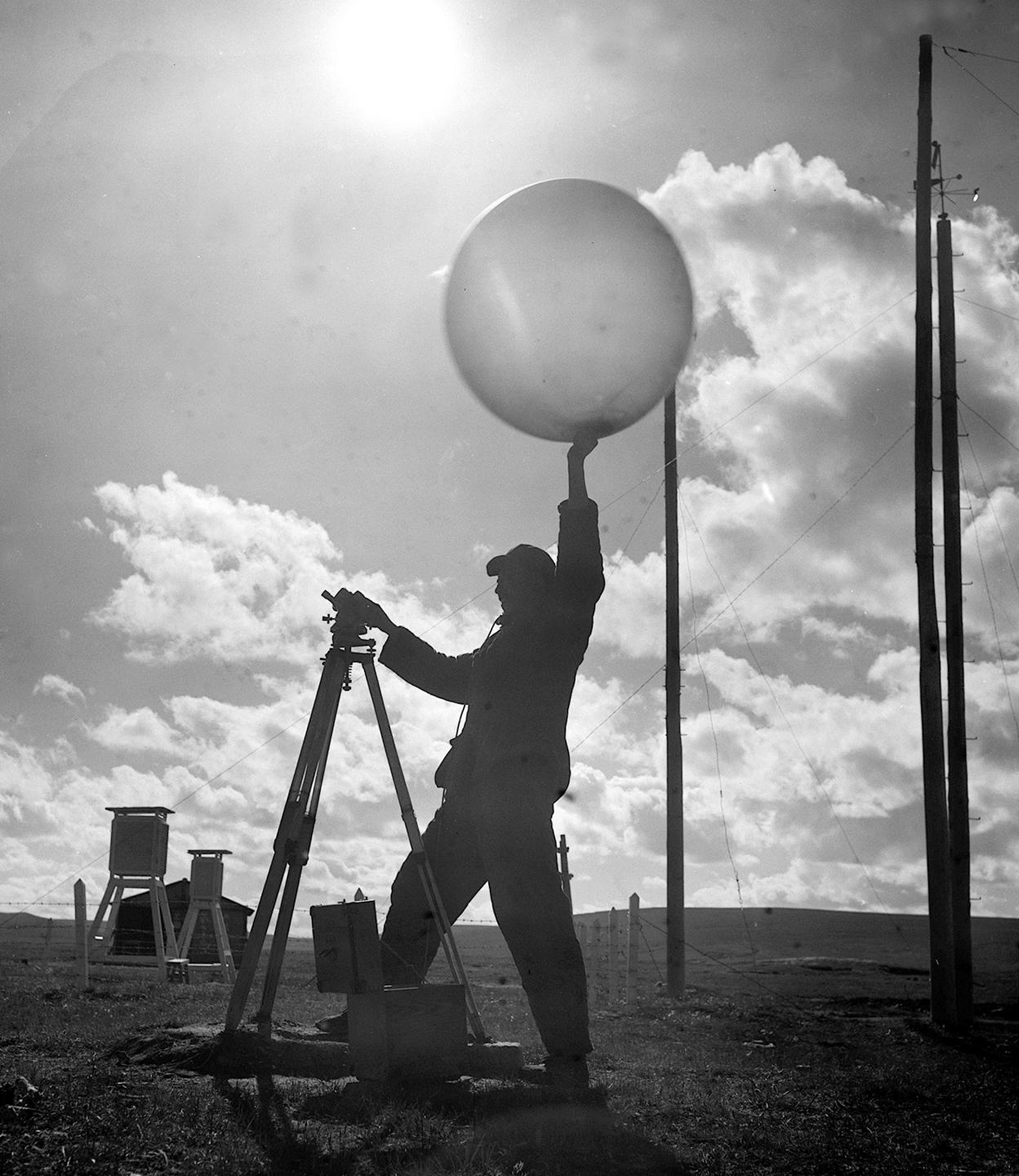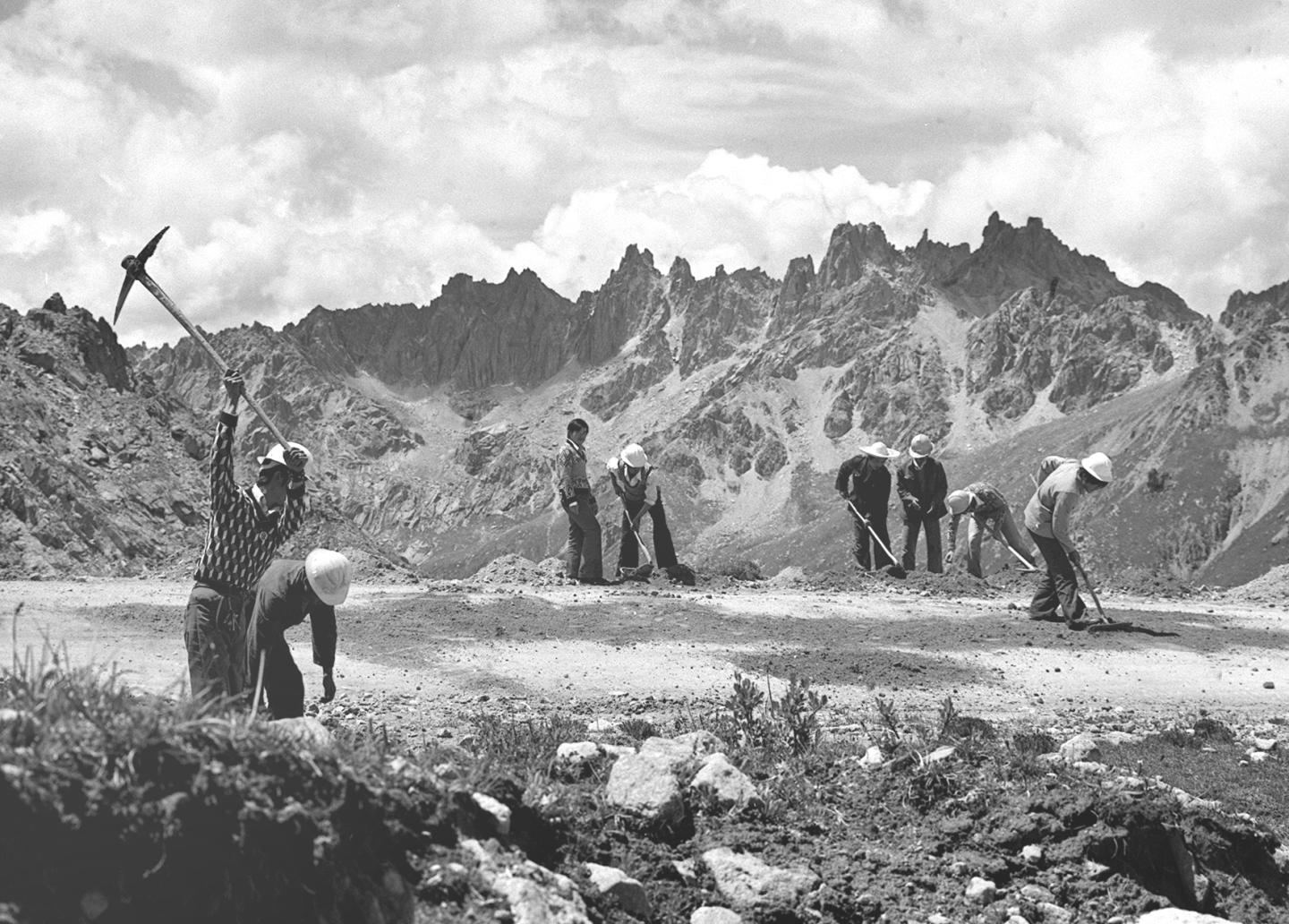 1964年,五道梁氣象服務站的工作人員放測風氣球。在昆侖(lun) 山裏工作的氣象工作者,長期堅守工作崗位,為(wei) 青藏公路安全運輸提供了寶貴的氣象資料。