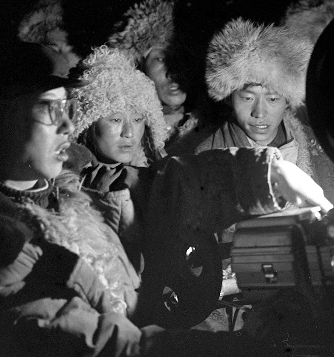1964年,西藏安多縣的牧民們(men) 圍著電影放映機,等待電影開演。川藏、青藏公路通車後,沿路地區麵貌一新,曾經荒僻的地方,居民們(men) 也能看到電影了。