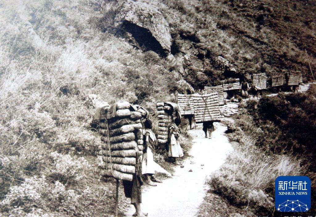1903年茶馬古道上,背夫從(cong) 四川瀘定背茶前往青藏高原。新華社發
