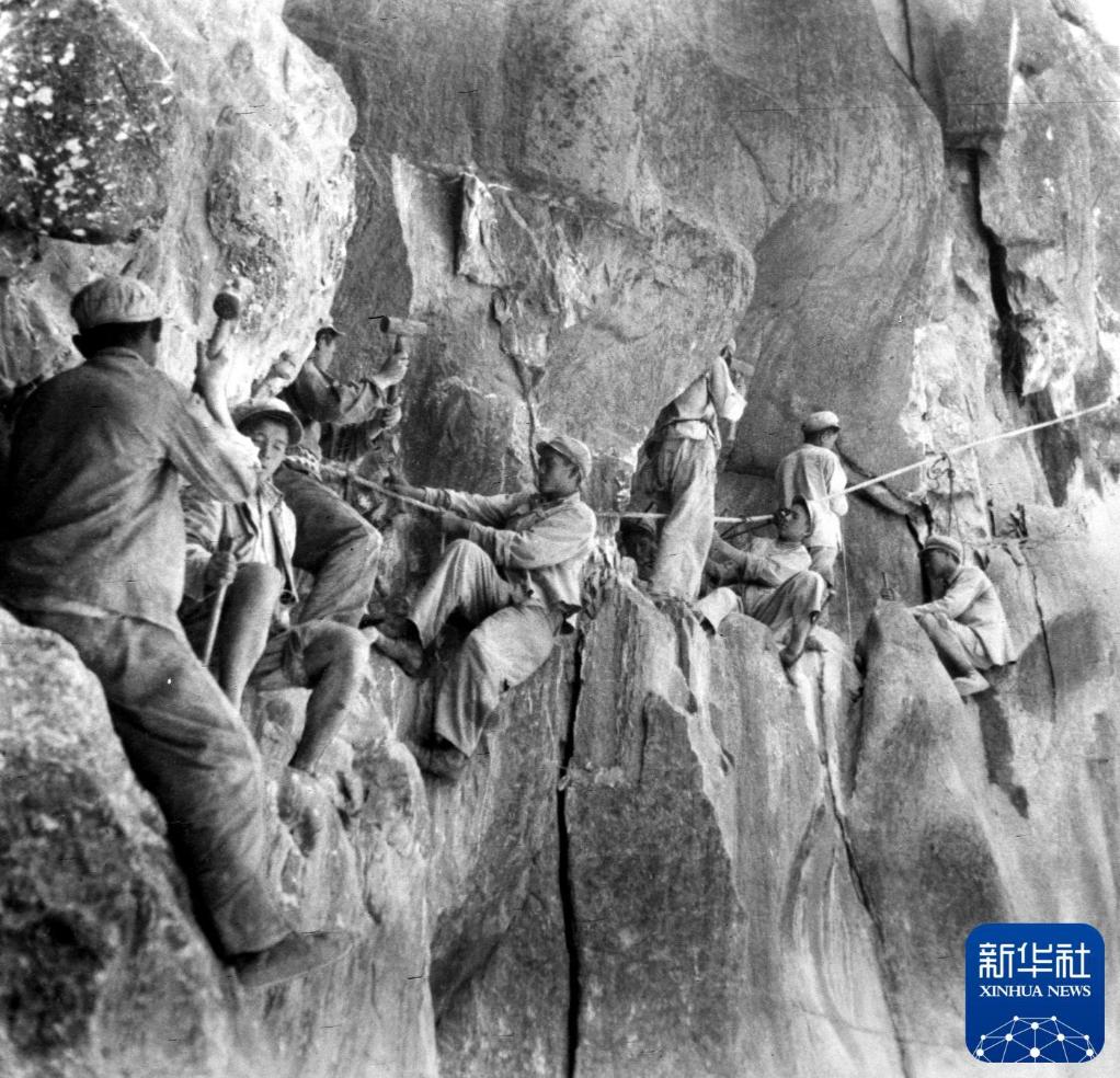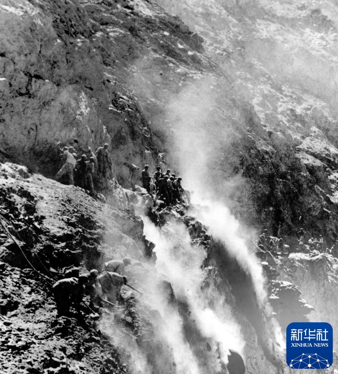 築路戰士在怒江兩(liang) 岸的懸崖陡壁上辟山築路。新華社發