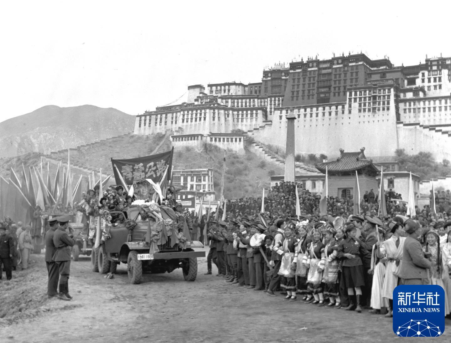 1954年12月25日,川藏公路、青藏公路同時正式通車。這是通車儀(yi) 式在西藏拉薩舉(ju) 行。新華社發