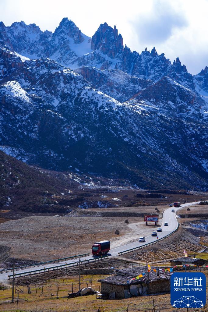 2024年11月1日,在四川省甘孜藏族自治州德格縣,車輛穿過雀兒(er) 山隧道後行駛在川藏公路上。新華社記者 沈伯韓 攝