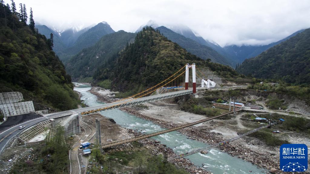 2016年3月29日拍攝的剛建成的通麥大橋。“通麥天險”路段位於(yu) 西藏波密縣和八一鎮之間,這裏是整個(ge) 川藏公路線最險的一段。2012年開始,“通麥天險”被納入川藏公路線改造計劃。2016年4月13日正式通車。新華社記者 普布紮西 攝