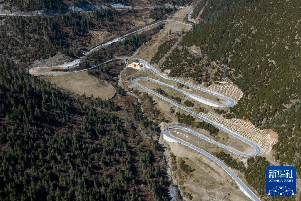 2024年11月1日在四川省甘孜藏族自治州德格縣拍攝的國道317公路雀兒(er) 山段老路(無人機照片)。新華社記者 王曦 攝