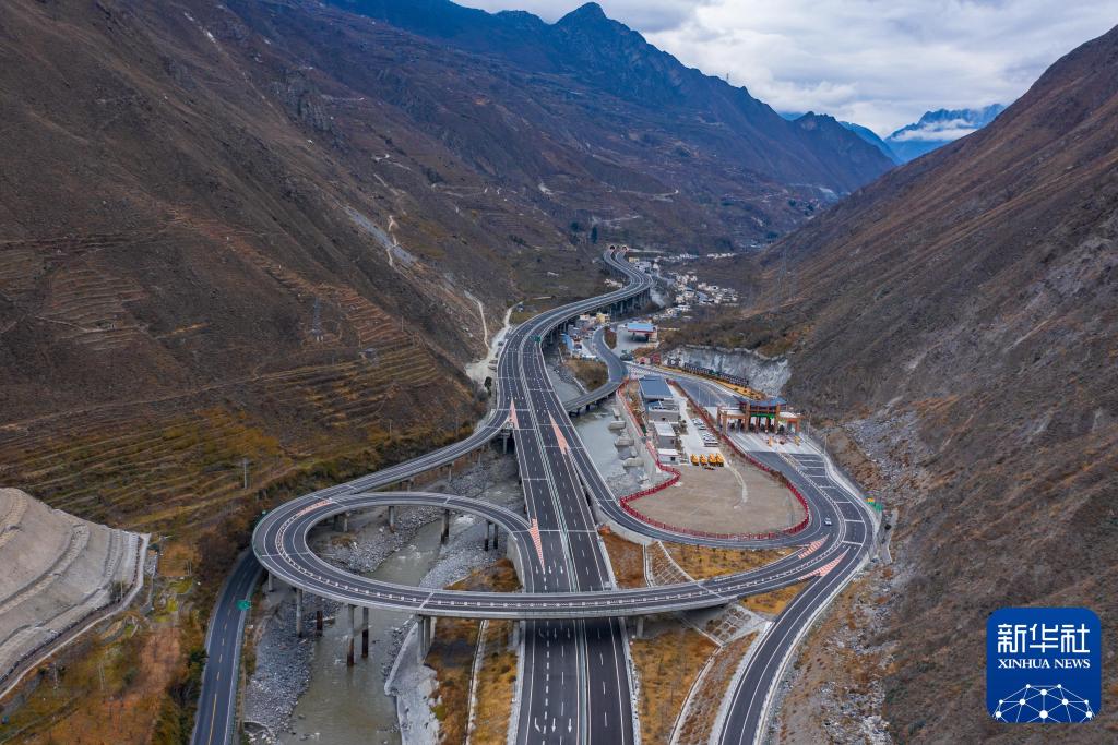 這是2020年12月20日拍攝的汶馬高速桃坪互通(無人機照片)。新華社發(阿壩州委宣傳(chuan) 部供圖)