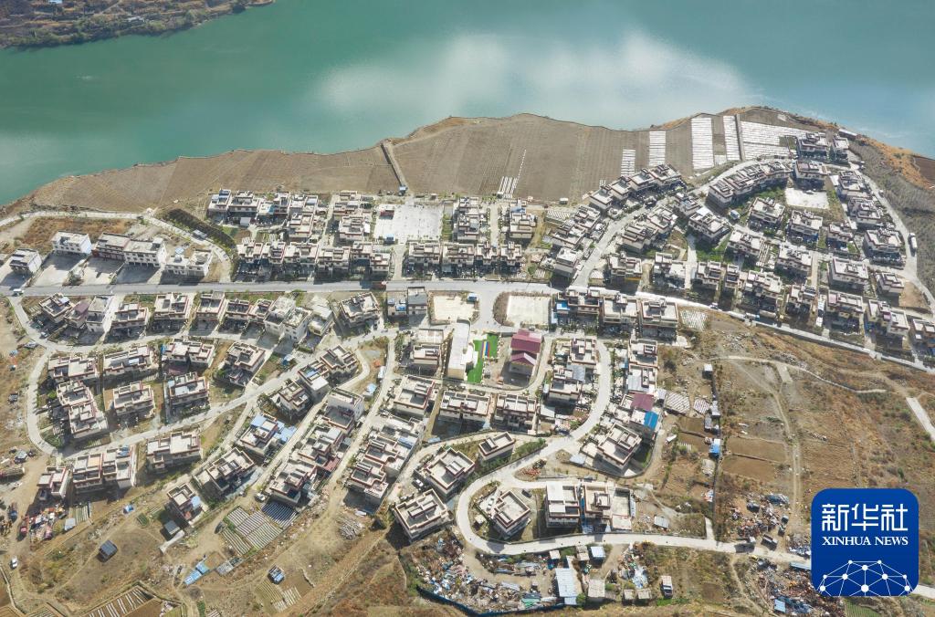 2019年4月16日,在川藏公路沿線的四川瀘定縣瀘橋鎮咱裏村,移民新村麵貌一新(無人機照片)。新華社記者 江宏景 攝