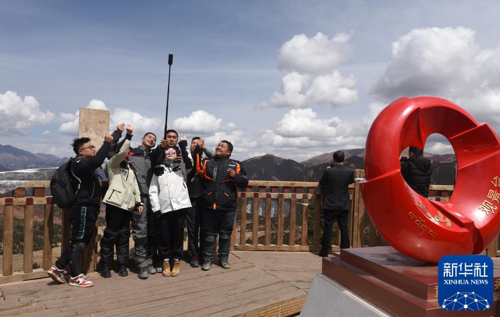 2021年5月2日,在西藏芒康縣拉烏(wu) 山,騎行摩托的年輕人在一起合影。新華社記者 陳燮 攝