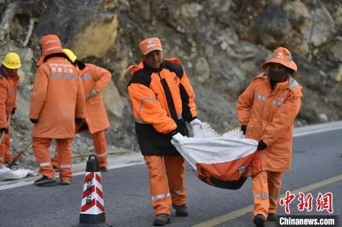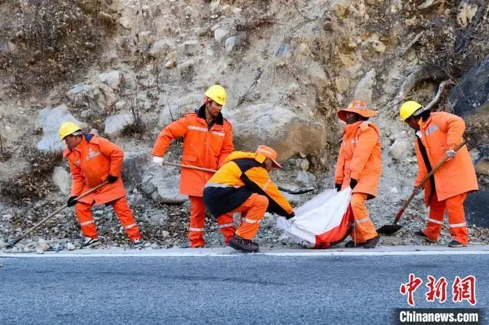 圖為(wei) 道班工人清理公路上的落石。中新社記者 貢嘎來鬆 攝