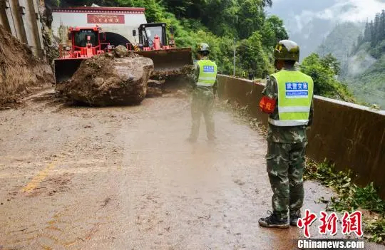 圖為(wei) 武警官兵處理路基垮塌險情現場。受訪單位提供