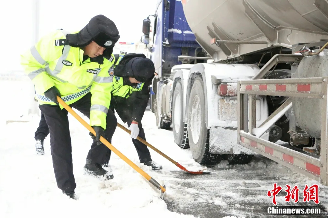 資料圖為(wei) 交警除雪保通畫麵。受訪單位提供