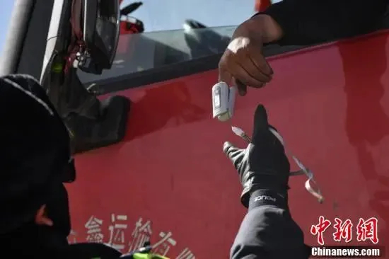 圖為(wei) 交警為(wei) 貨車司機測量血氧。中新社記者 貢嘎來鬆