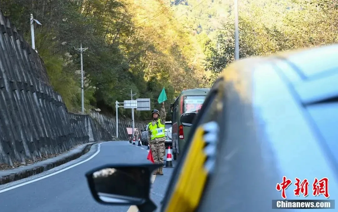 圖為(wei) 管護完畢後,武警官兵放行等待車輛。中新社記者 趙朗 攝