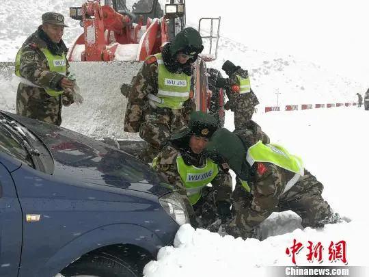 資料圖為(wei) 武警官兵徒手挖雪解救被困車輛。何忠杭 攝