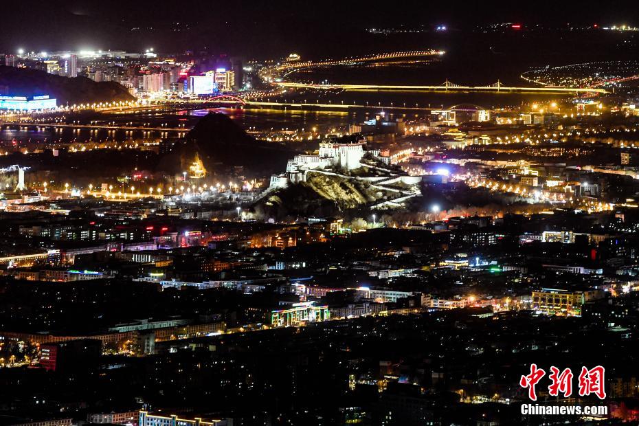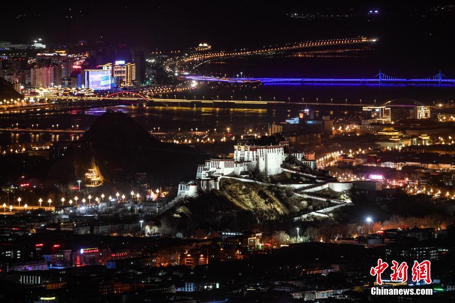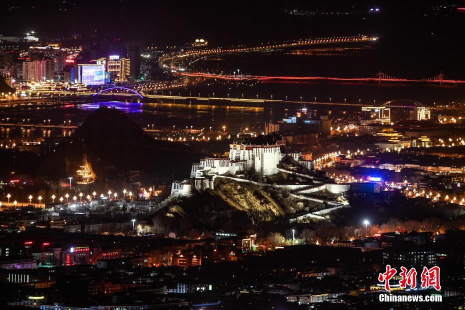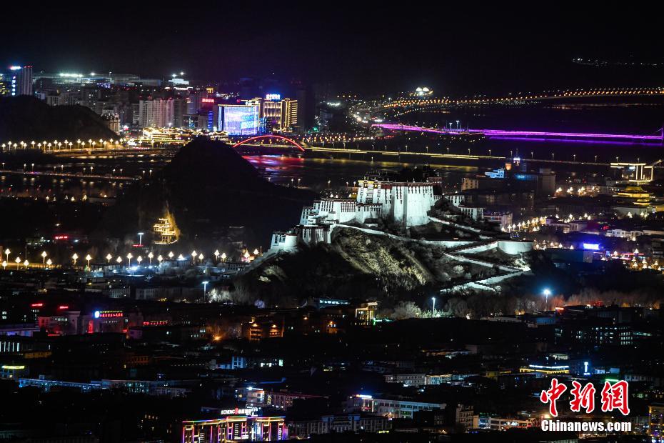 12月24日晚,西藏自治區拉薩市燈光璀璨,布達拉宮夜景迷人。中新社記者 貢嘎來鬆 攝