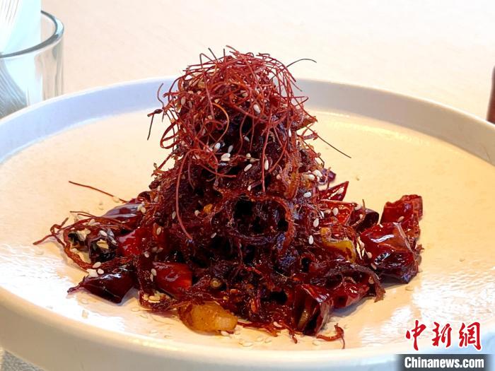 圖為(wei) 在西藏拉薩的新藏式餐廳中的燈影犛牛肉絲(si) 。王利文 攝