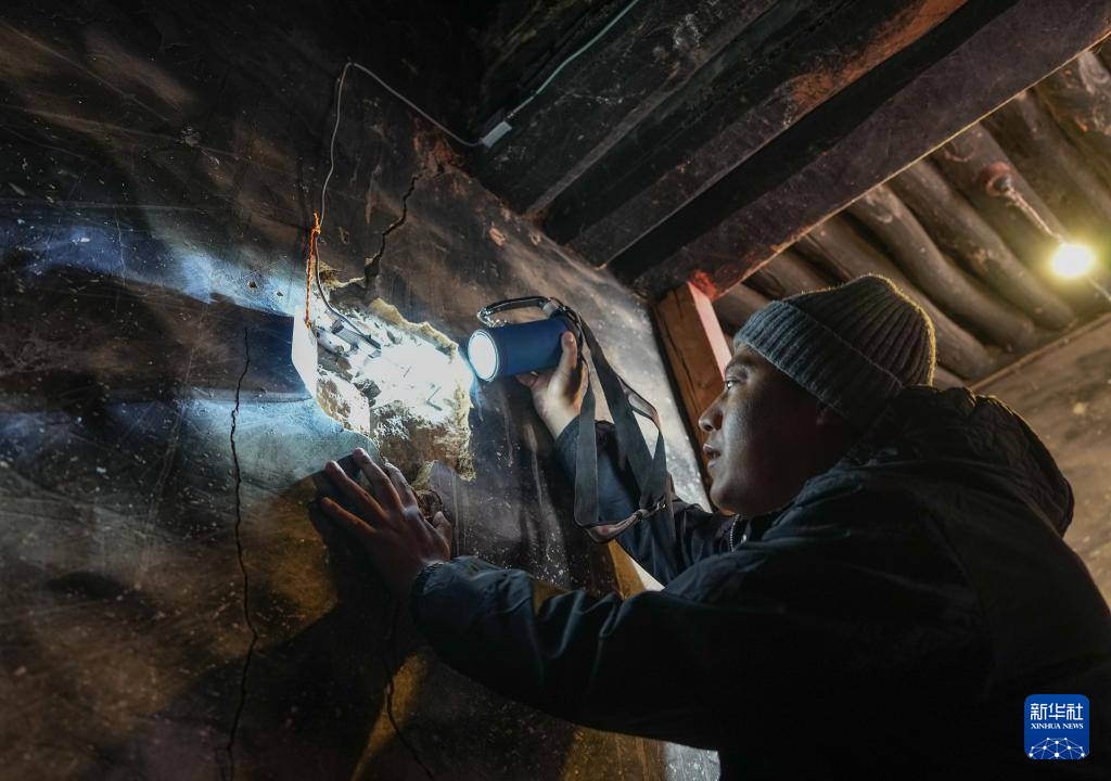 12月4日,布達拉宮監測中心的工作人員旦增旺堆巡查布達拉宮地壟傳(chuan) 感器設備。新華社記者 晉美多吉 攝