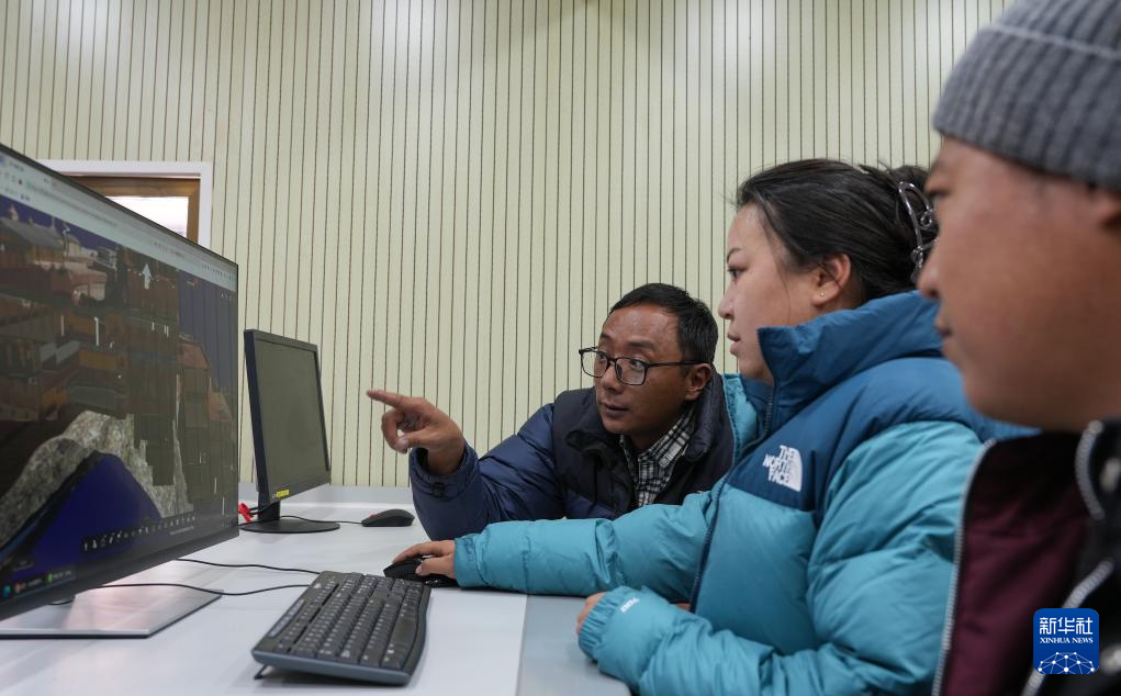 12月4日,布達拉宮監測中心的工作人員在查看布達拉宮三維圖像。新華社記者 晉美多吉 攝