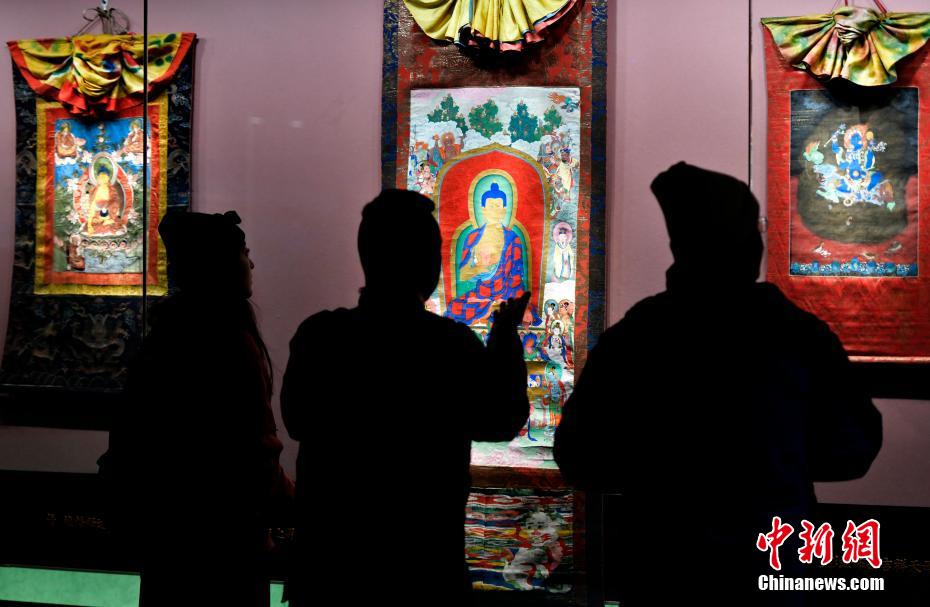 以“見證與(yu) 守望——鑄牢中華民族共同體(ti) 意識主題展”為(wei) 主題的展覽近日亮相西藏自治區拉薩市布達拉宮珍寶館。本次主題展精選100餘(yu) 件文物珍品,展覽通過文物、古籍及布達拉宮的傳(chuan) 承與(yu) 發展,講述各民族交往交流交融的故事。圖為(wei) 1月2日,觀眾(zhong) 拍攝展覽中的唐卡。中新社記者 李林 攝