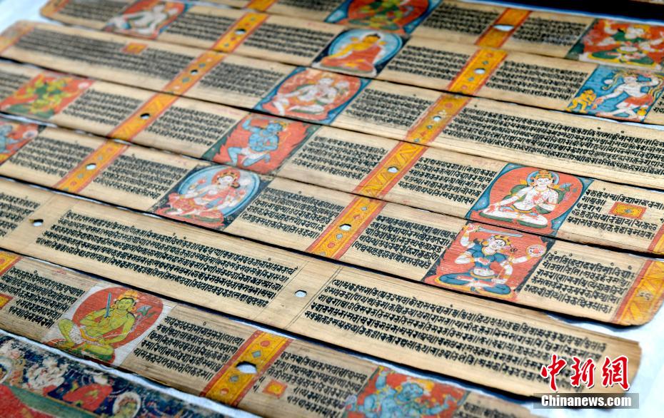 以“見證與(yu) 守望——鑄牢中華民族共同體(ti) 意識主題展”為(wei) 主題的展覽近日亮相西藏自治區拉薩市布達拉宮雪城珍寶館。本次主題展精選100餘(yu) 件文物珍品,展覽通過文物、古籍及布達拉宮的傳(chuan) 承與(yu) 發展,講述各民族交往交流交融的故事。圖為(wei) 1月2日,展覽中的13世紀《般若八千頌》貝葉經寫(xie) 本。中新社記者 李林 攝