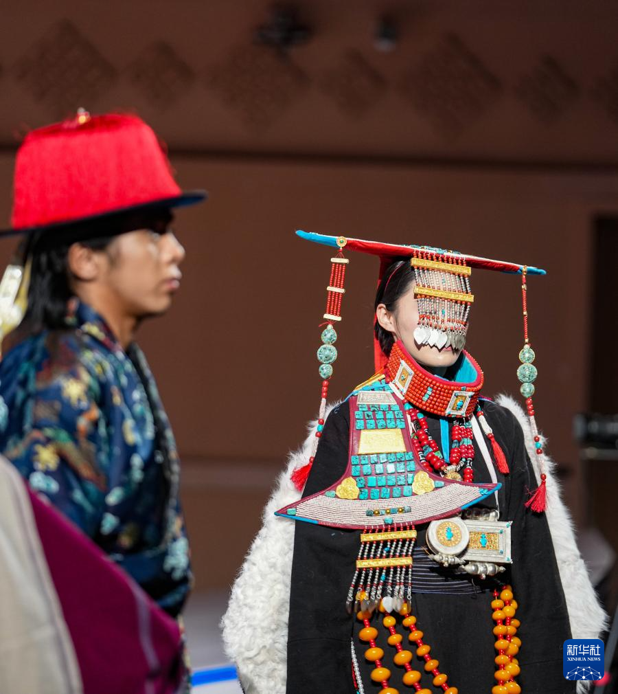 1月5日,模特在西藏傳(chuan) 統服飾秀上進行展示。新華社記者 晉美多吉 攝