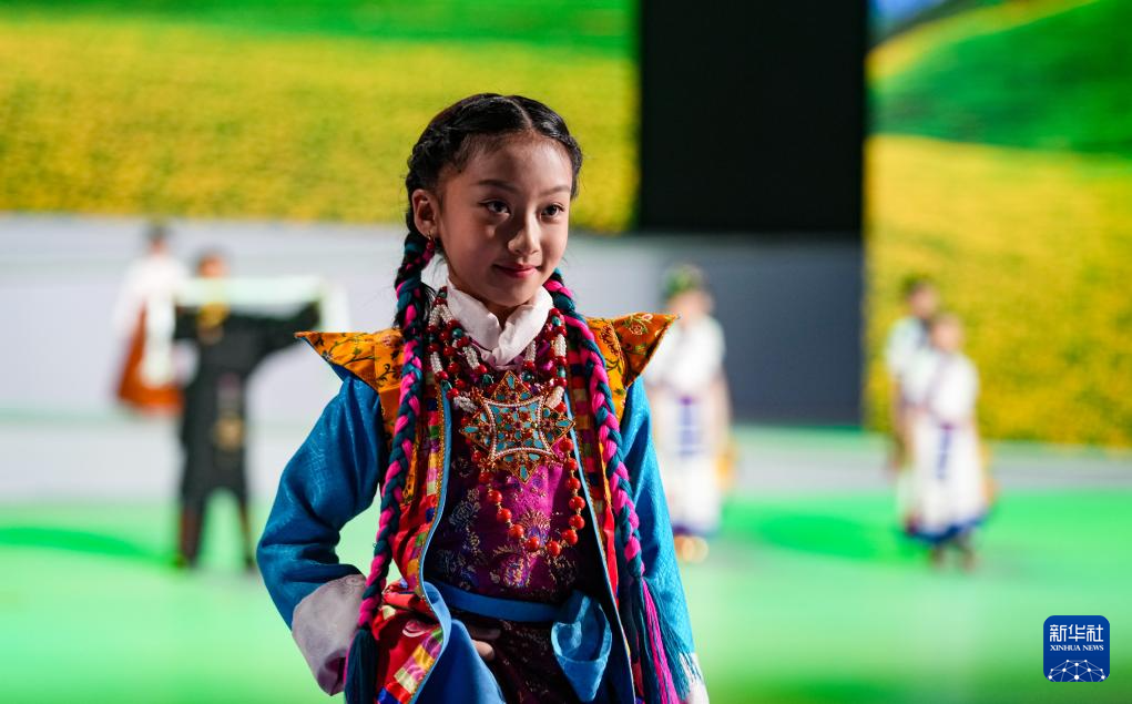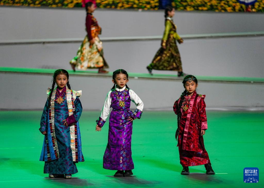 1月5日,小朋友在兒(er) 童服飾秀上進行展示。新華社記者 晉美多吉 攝