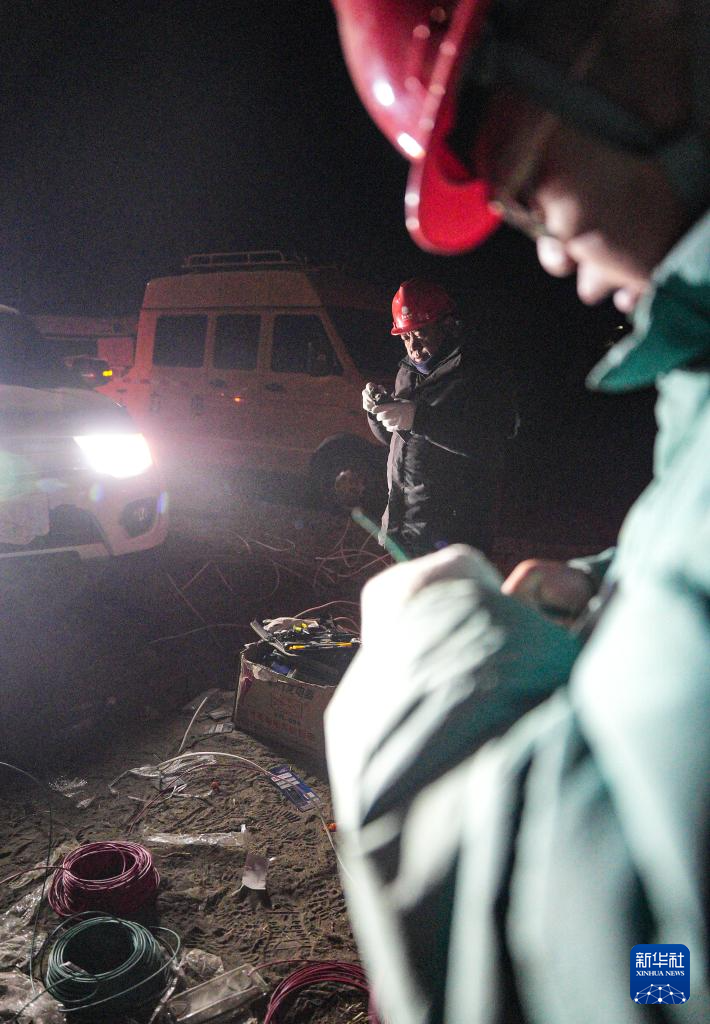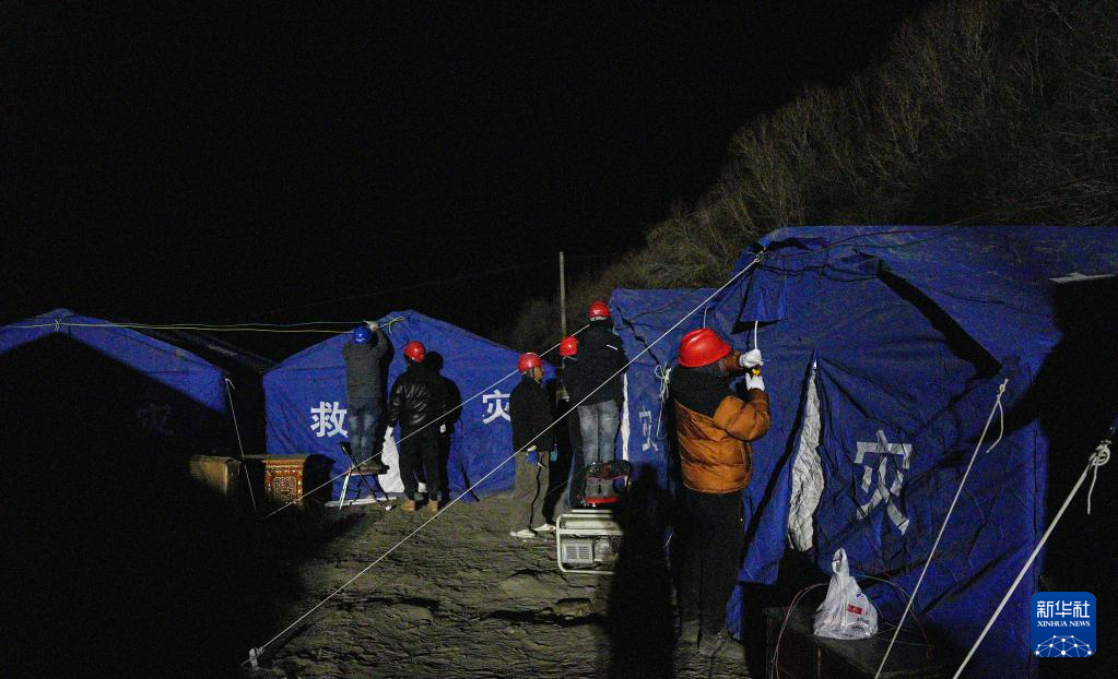 1月7日,在定日縣長所鄉(xiang) 集中安置點,工作人員在保障電力供應。新華社記者 晉美多吉 攝