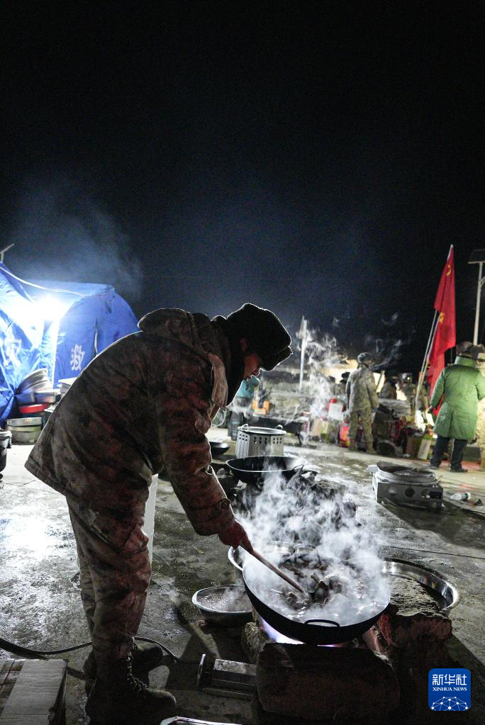 1月7日,在定日縣古榮村集中安置點,解放軍(jun) 為(wei) 受災群眾(zhong) 做飯。新華社記者 晉美多吉 攝