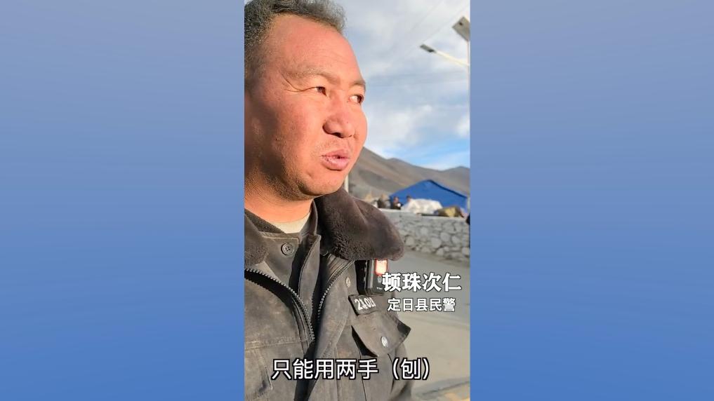 “我們(men) 用雙手把被埋人員刨出來。”定日縣公安局幹警頓珠次仁的身上全是灰塵,臉上的汗水衝(chong) 出一道道溝,雙手指甲裏塞滿了泥土和血絲(si) 。