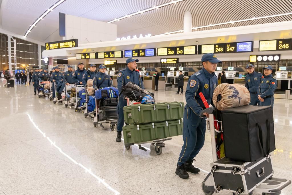 重慶市藍天救援隊一梯隊共出動12人,攜帶衛星電話、衛星地麵站、生命探測儀(yi) 等設備,於(yu) 1月9日乘坐航班從(cong) 重慶前往西藏進行地震救援行動。