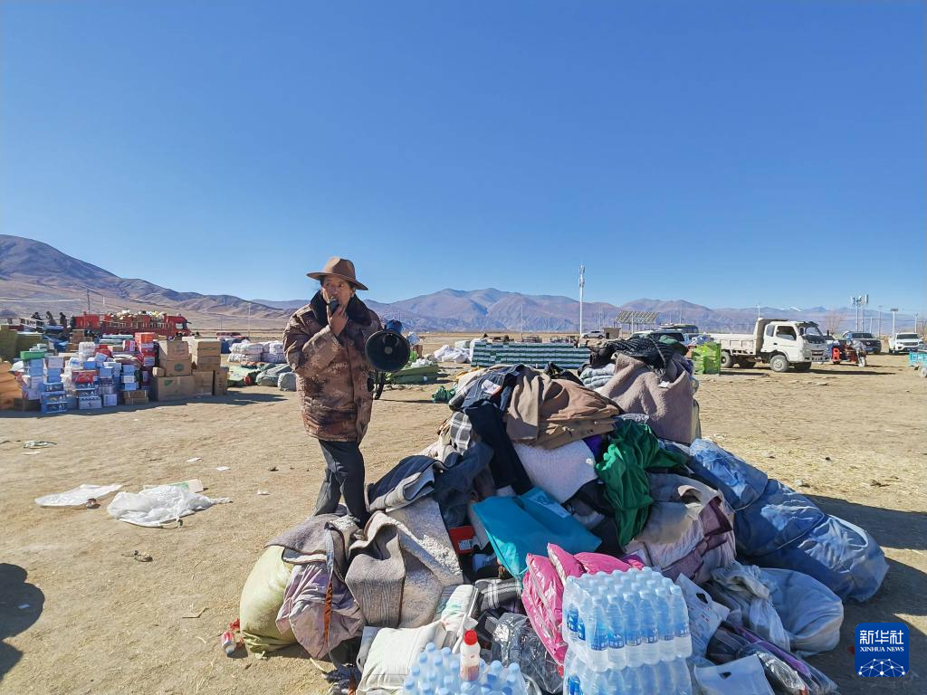 1月9日,達娃正在給村民分發救災物資。新華社記者 白明山 攝