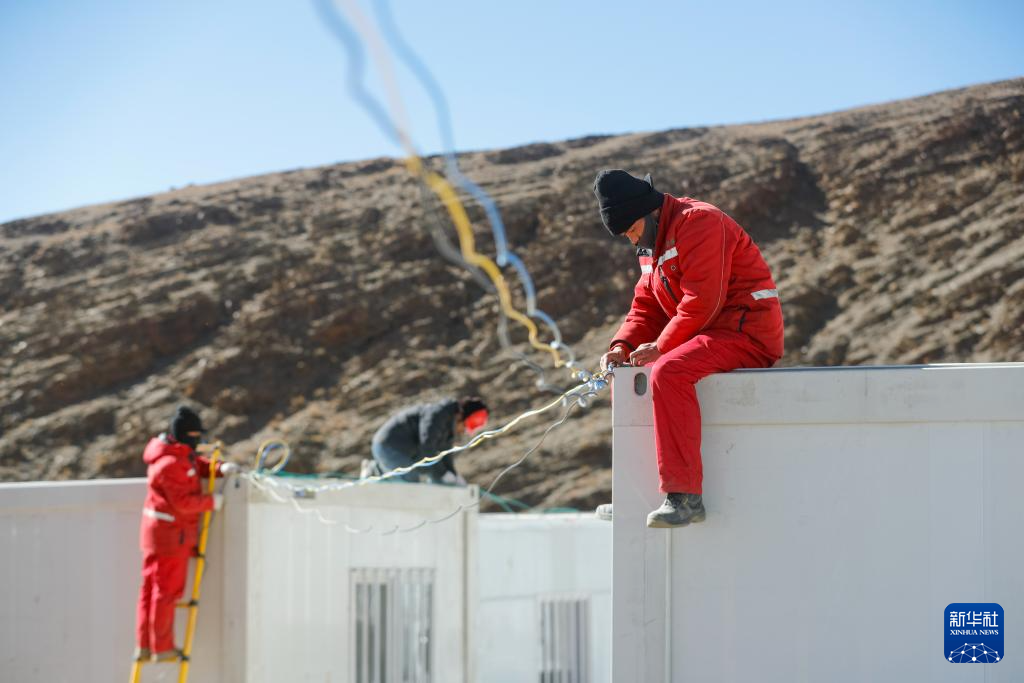 1月10日,在定日縣長所鄉(xiang) 古榮村,工人在為(wei) 板房搭設電路。新華社記者 沈伯韓 攝