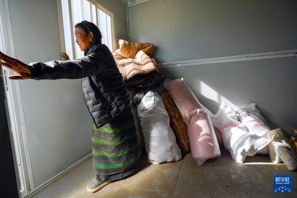 1月10日,在定日縣長所鄉(xiang) 古榮村,受災群眾(zhong) 搬入板房。新華社記者 晉美多吉 攝