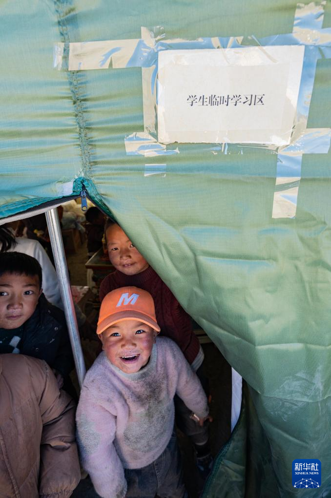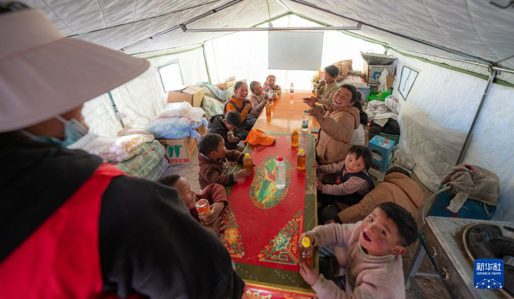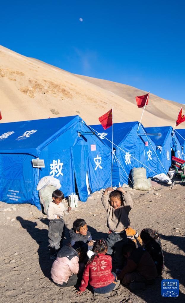 1月10日,在定結縣郭加鄉(xiang) 乃村安置點,孩子們(men) 在學生臨(lin) 時學習(xi) 區做遊戲。新華社記者 丁增尼達 攝
