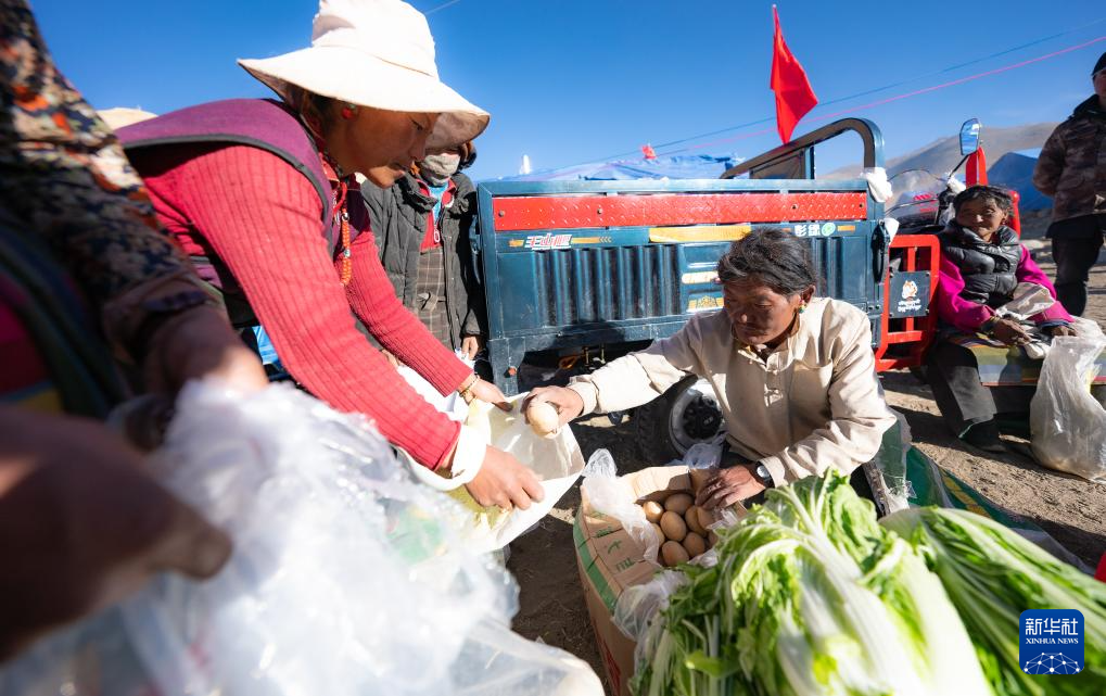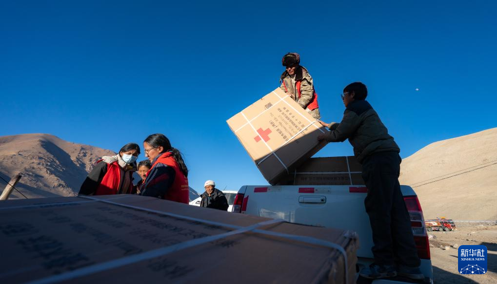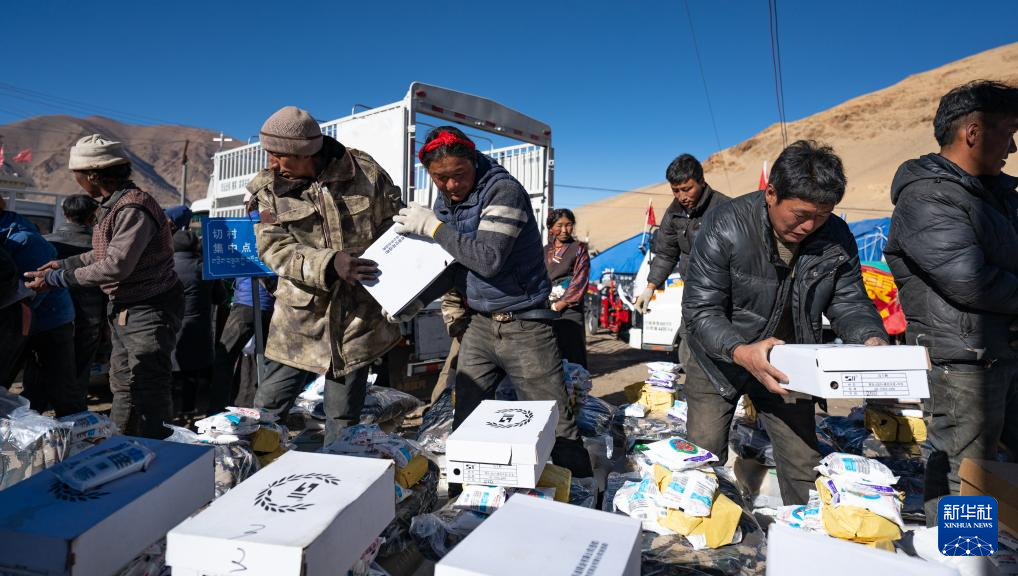 1月10日,在定結縣郭加鄉(xiang) 切村安置點,群眾(zhong) 分配救災物資。新華社記者 丁增尼達 攝
