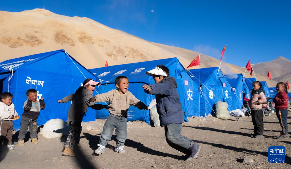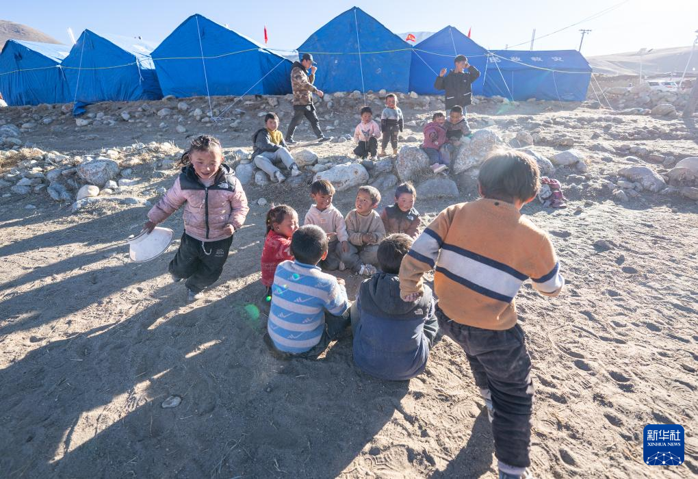 1月10日,在定結縣郭加鄉(xiang) 切村安置點,孩子們(men) 在玩遊戲。新華社記者 丁增尼達 攝