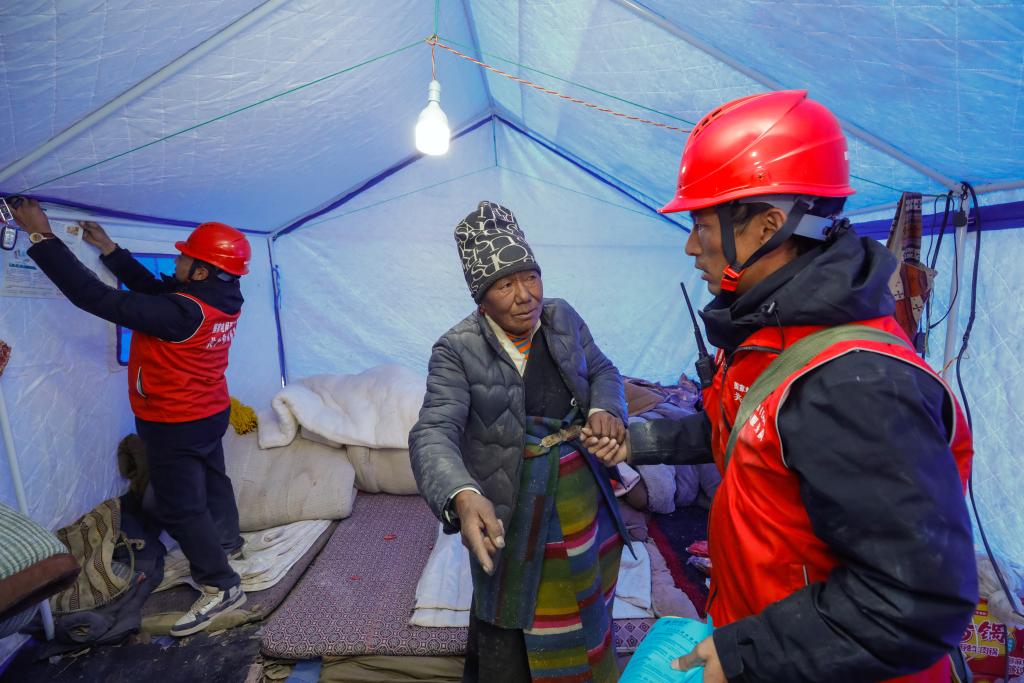 塘仁村63歲村民桑傑卓瑪家的三間帳篷搭建在自家震損房屋旁邊的草地裏,國家電網搶險救援人員為(wei) 她從(cong) 市電主線接通入戶。“這下能檢查的項目更全了。”現場攜帶電子儀(yi) 器、準備為(wei) 桑傑卓瑪一家進行入戶體(ti) 檢的醫療保障人員說。