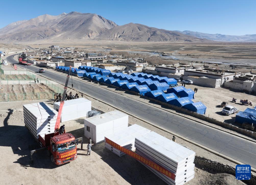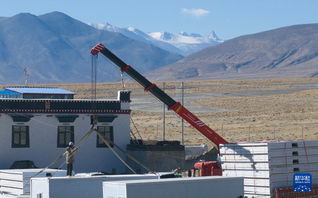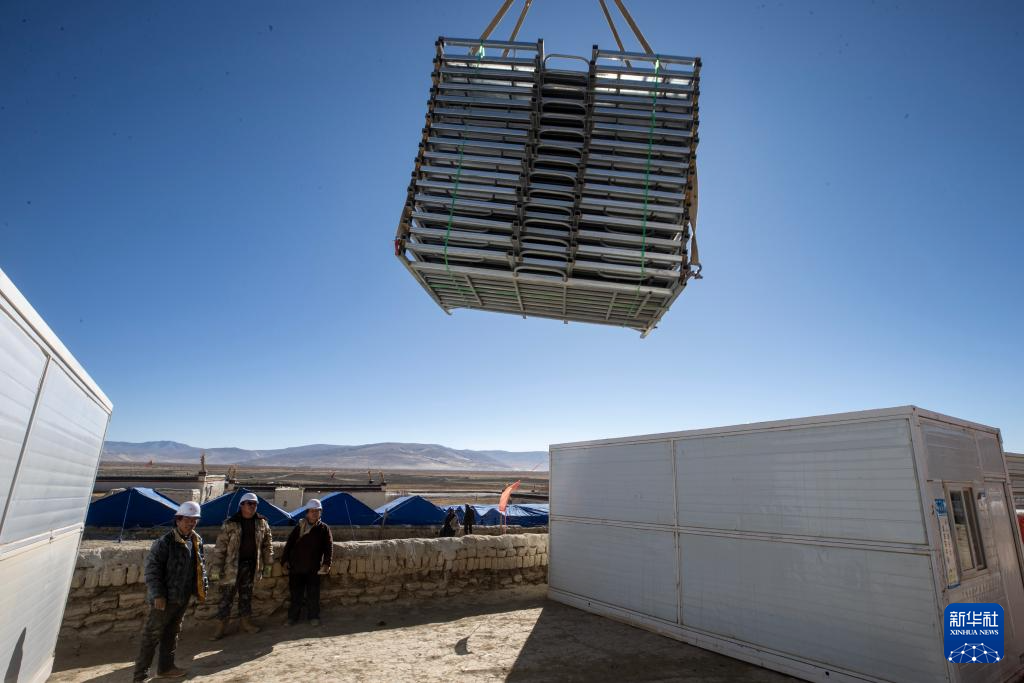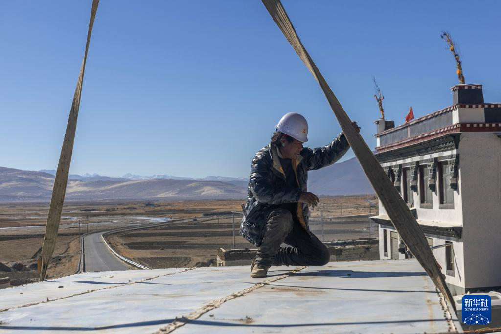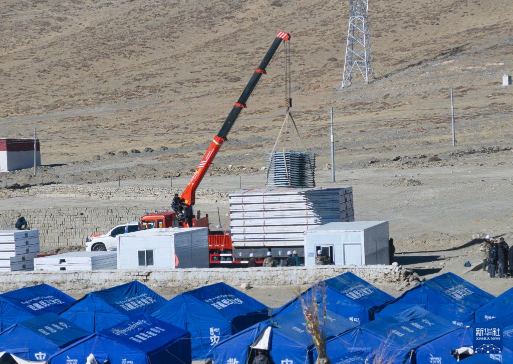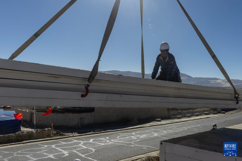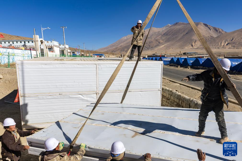 當日,在薩迦縣麻布加鄉(xiang) 白拉村,工程人員與(yu) 有相應技術的村民一起建設活動板房。據了解,這是薩迦縣地震災區開建的第一批板房。