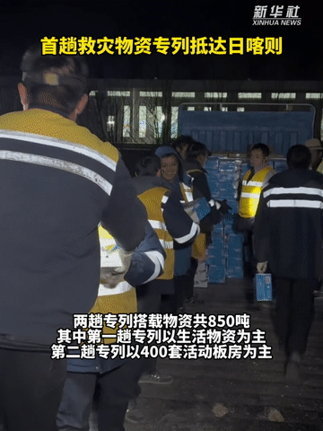 在首趟物資專(zhuan) 列抵達後,次日零點二十分左右,第二趟抗震救災物資專(zhuan) 列接續到達日喀則西火車站。