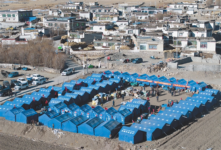 薩迦縣整體(ti) 受災情況如何,薩迦縣委副書(shu) 記於(yu) 治花告訴記者:“截至1月10日中午,全縣受災最嚴(yan) 重的4個(ge) 鄉(xiang) 鎮共有3名群眾(zhong) 受輕傷(shang) ,排查出不同程度受損房屋3957間,局部倒塌53戶,牲畜沒有傷(shang) 亡。全縣共有26個(ge) 集中安置點,其餘(yu) 群眾(zhong) 分散安置在各自的村裏,帳篷基本實現一戶一頂,後續物資還在運送當中。”