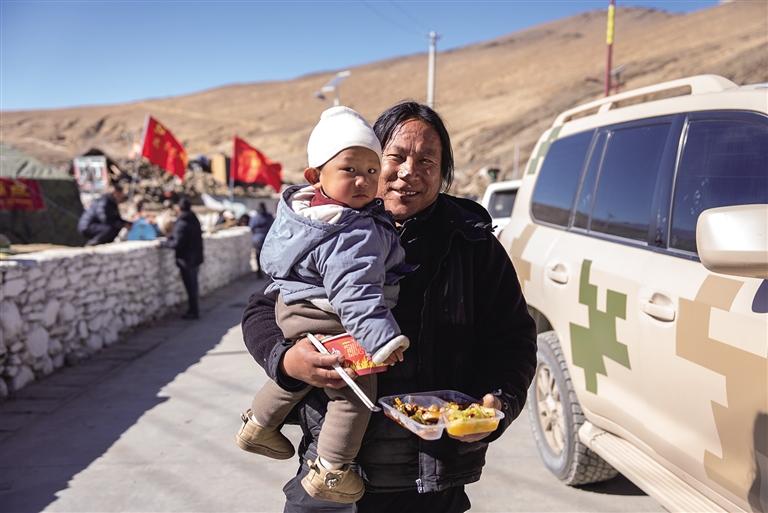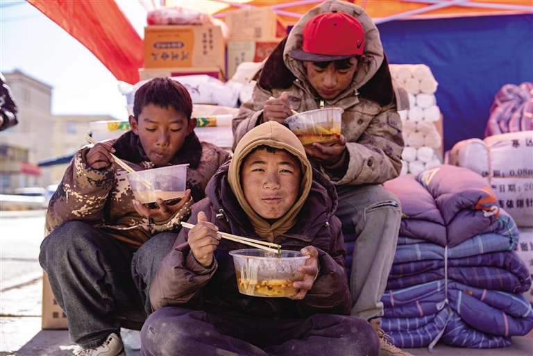 在長所鄉(xiang) 森嘎村安置點,來自定日縣崗嘎鎮的普桑和其他3名村民正在給受災群眾(zhong) 與(yu) 救援人員分發“巴突”(藏語音譯,意為(wei) 麵疙瘩)。“今天上午我們(men) 做的‘強歸’(藏語音譯,意為(wei) 煮青稞酒和糌粑),中午做的‘巴突’,這是我們(men) 的傳(chuan) 統美食,吃了全身都會(hui) 暖乎乎的。大家互幫互助,一切都會(hui) 慢慢好起來的。”普桑說。
