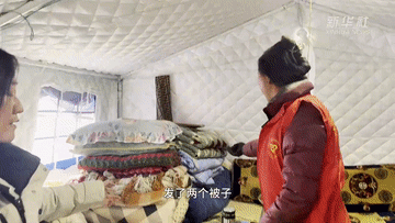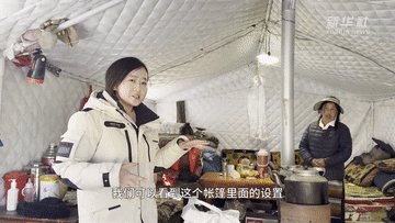 采訪中,記者走進一間帳篷進行探訪。在帳篷內(nei) 可以看到灶具、水桶、廚具、爐子,還有藏式沙發、桌子,甚至還有電視。據女主人介紹,地震發生後,老百姓領到了被子、泡麵、饅頭、菜、肉、燃料等救災物資。