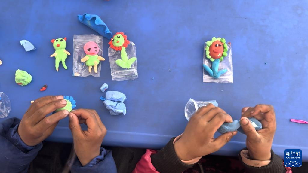 1月13日中午,在定日縣曲洛鄉(xiang) 措娃村安置點的兒(er) 童友好空間,孩子們(men) 在社工指導下捏塑超輕黏土。新華社記者索朗德吉 攝
