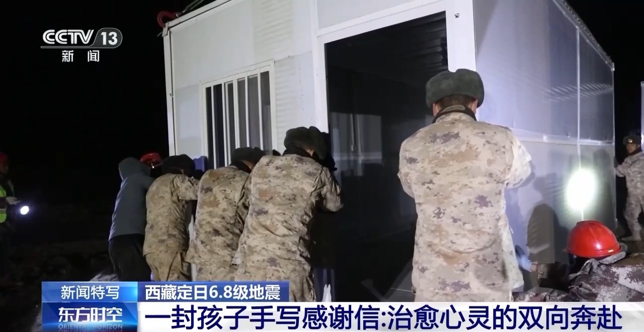 12日中午,消防員旦增赤列在曲洛鄉(xiang) 班久崗村安置點忙碌時,一個(ge) 女孩突然將一個(ge) 疊好的小紙包塞到他手裏。裝信的紙包上寫(xie) 著“謝謝你們(men) ,消防員叔叔”。