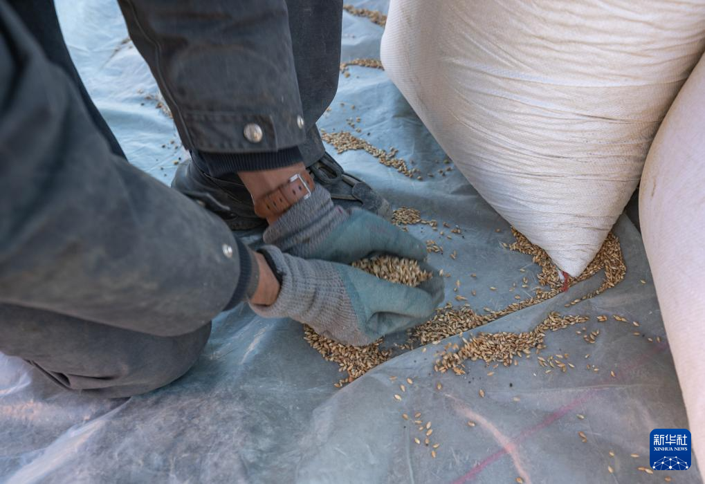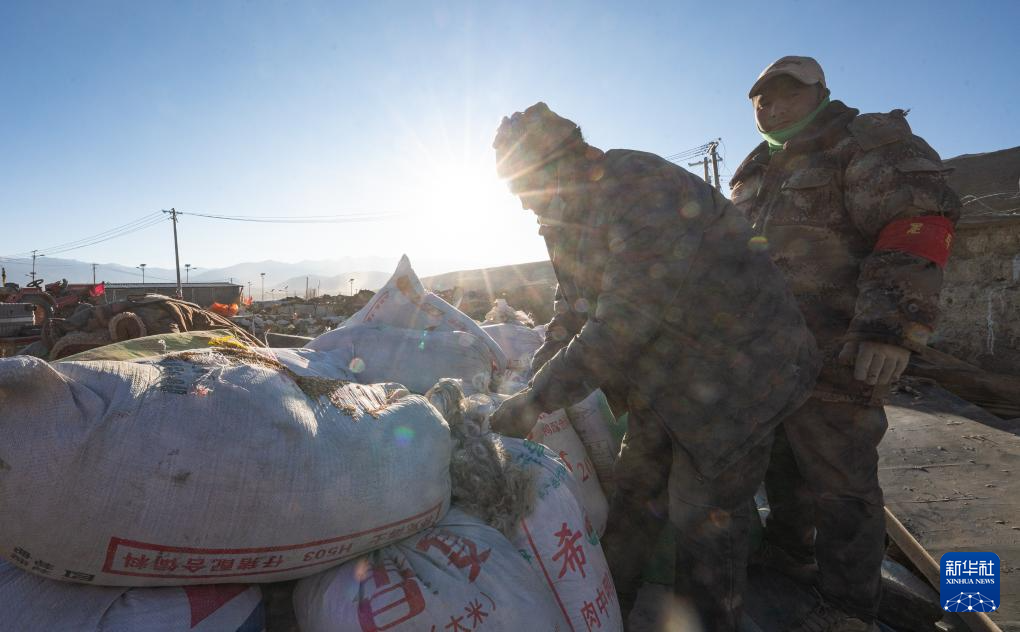 1月13日,在定日縣長所鄉(xiang) 古榮村,定日縣民兵在搬運青稞。新華社記者 丁增尼達 攝